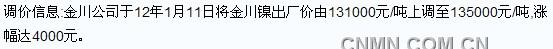 2012年01月11日 13:42 1917次浏览 来源: 中国有色网 分类: 金川公司镍报价