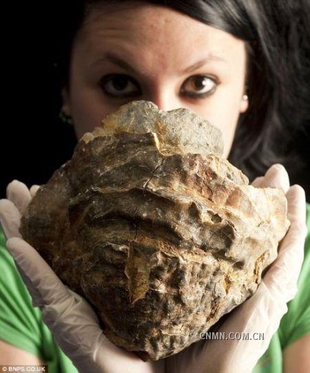 这个经测量直径约7英寸的牡蛎已保存在英国朴茨茅斯市蓝礁水族馆。它在这里受到严格保护,只有专家才能一睹其真容。这家水族馆的林赛-霍洛威表示:“它在一艘渔船的网中被发现。渔民在索伦特海峡用拖网打捞到它。渔民回到港口时,一开始认为那是一个真牡蛎,但把它拾起来,洗干净,近距离观察时才发现它可能是化石。它已完全变成石头。”