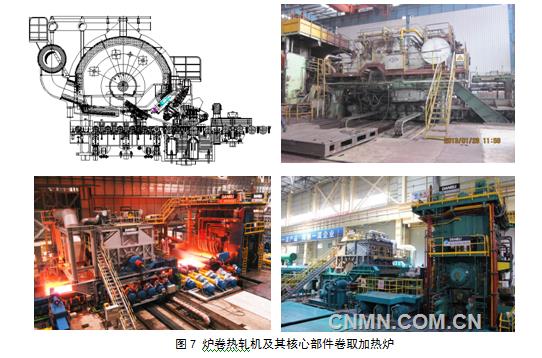 图7所示为钢铁行业、钛及钛合金板带生产领域所使用的炉卷热轧机及其核心部件卷取加热炉的工程图示。