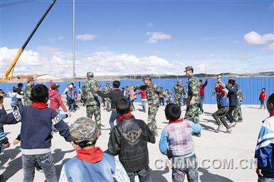 同时,该支队还利用驻地藏族同胞能歌善舞的优势,邀请村民到营区现场指导官兵学跳藏族锅庄舞,经常开展警民同乐篝火晚会等活动。部队进驻工作区半年来,累计举办警民联欢晚会10余场,放映优秀影片10余部,广大官兵用无边的大爱、无限的真情和无私的帮助,在广大藏族群众中种下了“爱民之花”,“文化扶贫”活动受到驻地藏族群众的频频点赞。