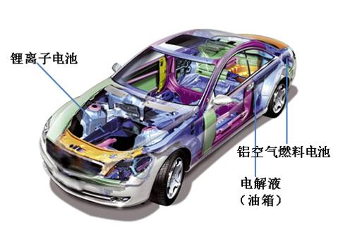 美铝加拿大公司和以色列公司Phinergy新展示的100公斤重的铝空气电池储存了可行驶3000公里的足够电量。使用这种电池的汽车仍需保留锂电子电池,铝电池只在锂电池电量耗尽后才启动,因此可以用很长时间,期间只需每月加注清水。通常在一年左右达到使用极限后,到服务站更换新的铝板即可。