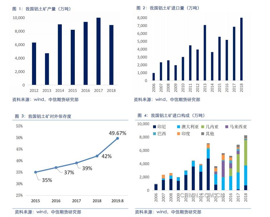 我国海关发布的数据显示,2014年以来,我国铝土矿进口量保持稳步增长。2018年,我国氧化铝产量约为7200万吨,国内铝土矿产量约1亿吨,进口铝土矿约占国内矿石总供应量的42%。