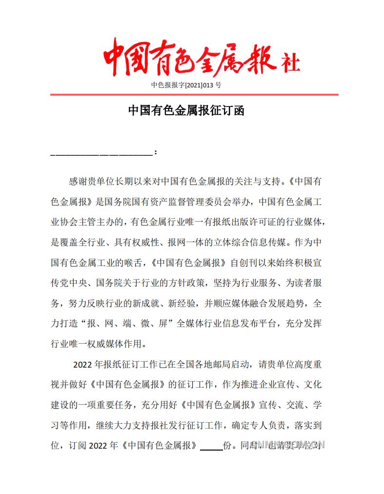 凡注明文章来源为“中国有色金属报”或 “中国有色网”的文章,均为中国有色网原创或者是合作机构授权同意发布的文章。