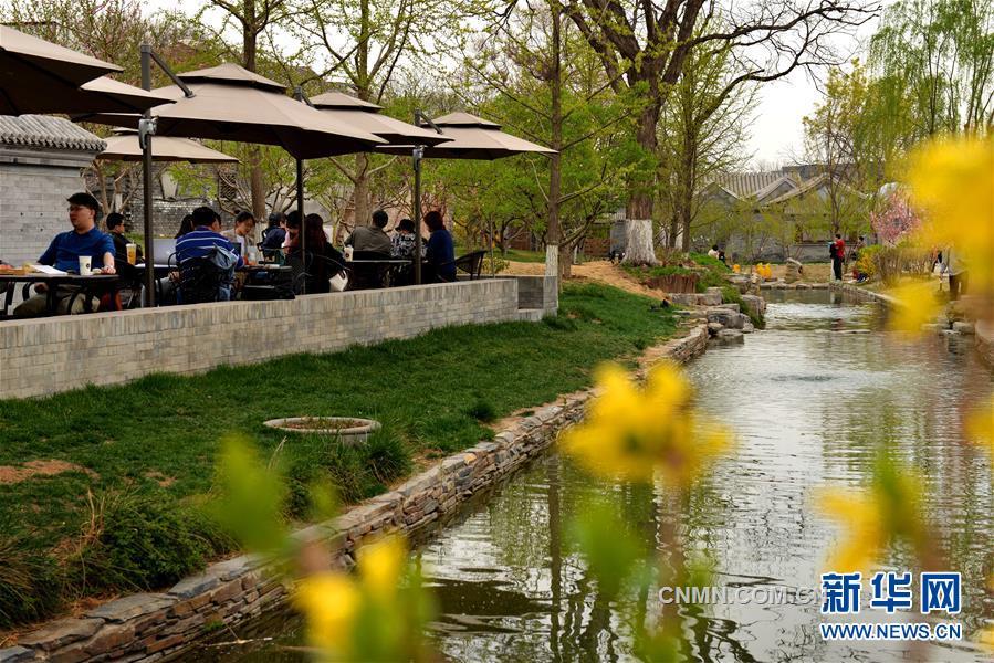 市民在三里河绿化景观休闲(4月6日摄)。新华社发(任超 摄)