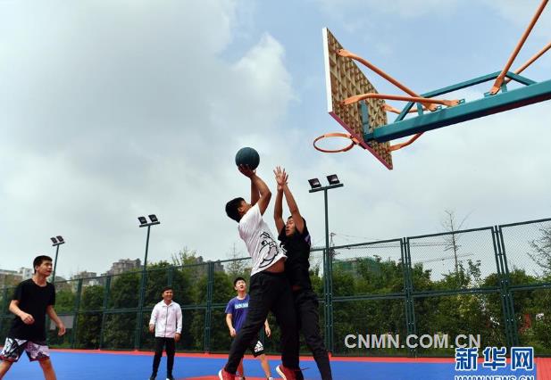 市民在许昌鹿鸣湖体育公园打篮球(6月18日摄)。 新华社记者 李嘉南 摄