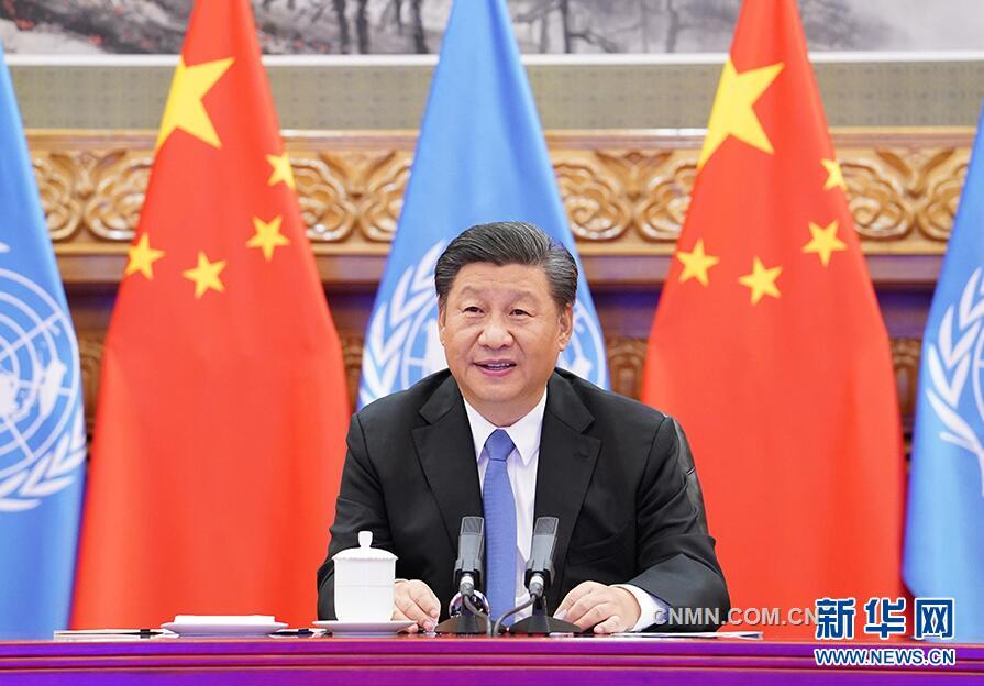 9月23日晚,国家主席习近平在北京以视频方式会见联合国秘书长古特雷斯。 新华社记者 饶爱民 摄