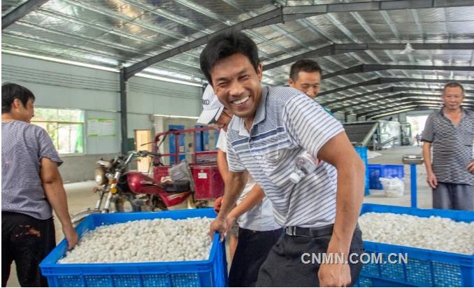 阳新县木港镇村民正在销售蚕茧,中铝集团坚持产业扶贫提升百姓的获得感。