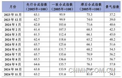 11月份,先行合成指数为63.2,较上月回落0.6个点,但仍处于较高水平。预计未来一段时间,中国铝冶炼产业增速可能有所放缓,但仍保持乐观预期。先行指数的波动主要受到市场需求预期、原材料价格变动及行业政策导向等多重因素影响。