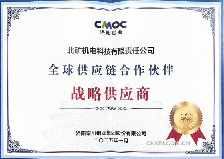 北矿科技所属北矿机电获评洛阳钼业“战略供应商”称号。