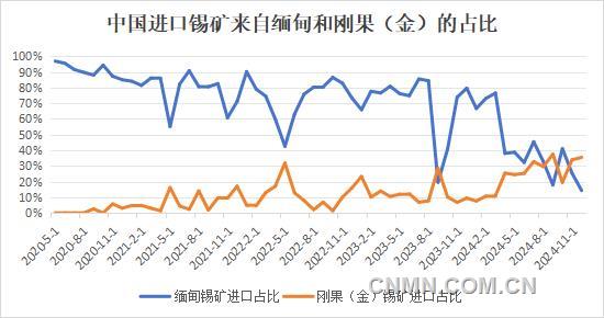 刚果(金)地缘局势不稳定,使锡矿供应增加了不确定性。今年年初以来,刚果(金)北部的政治冲突引发了国际社会的广泛关注,尤其是对全球锡矿供应链的潜在影响。USGS数据显示,2023年,刚果(金)锡矿产量为2万吨,占全球总产量的6.7%,排名第五。去年,缅甸锡矿禁采后,我国从刚果(金)进口锡矿的规模大幅提升,总计进口1.97万金属吨,占总进口量的34%,排名第一位,而我国去年从缅甸进口锡矿的比重下降到30%。刚果(金)是全球锡矿供应的重要来源之一,其局势变化对锡供应具有重要影响。该国当地最大的矿山企业AlphaminResources公司表示,尽管目前公司的运营仍在正常进行,但未来运行的不确定性仍然存在,冲突的任何进一步升级都可能导致采矿业务受到影响。