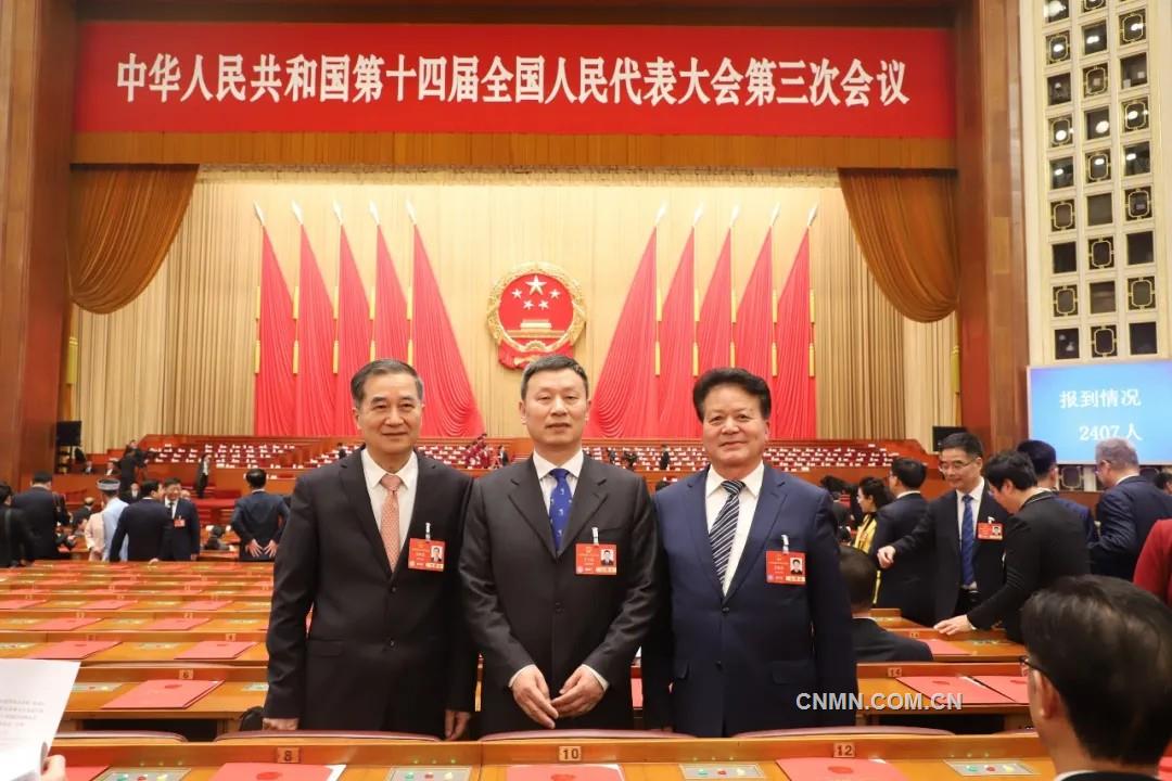 全国人大常务委员会委员、中国工程院院士、矿冶集团首席科学家沈政昌(左)和全国人大代表、铜陵有色金属集团控股有限公司总经理丁士启(中)因矿结缘。