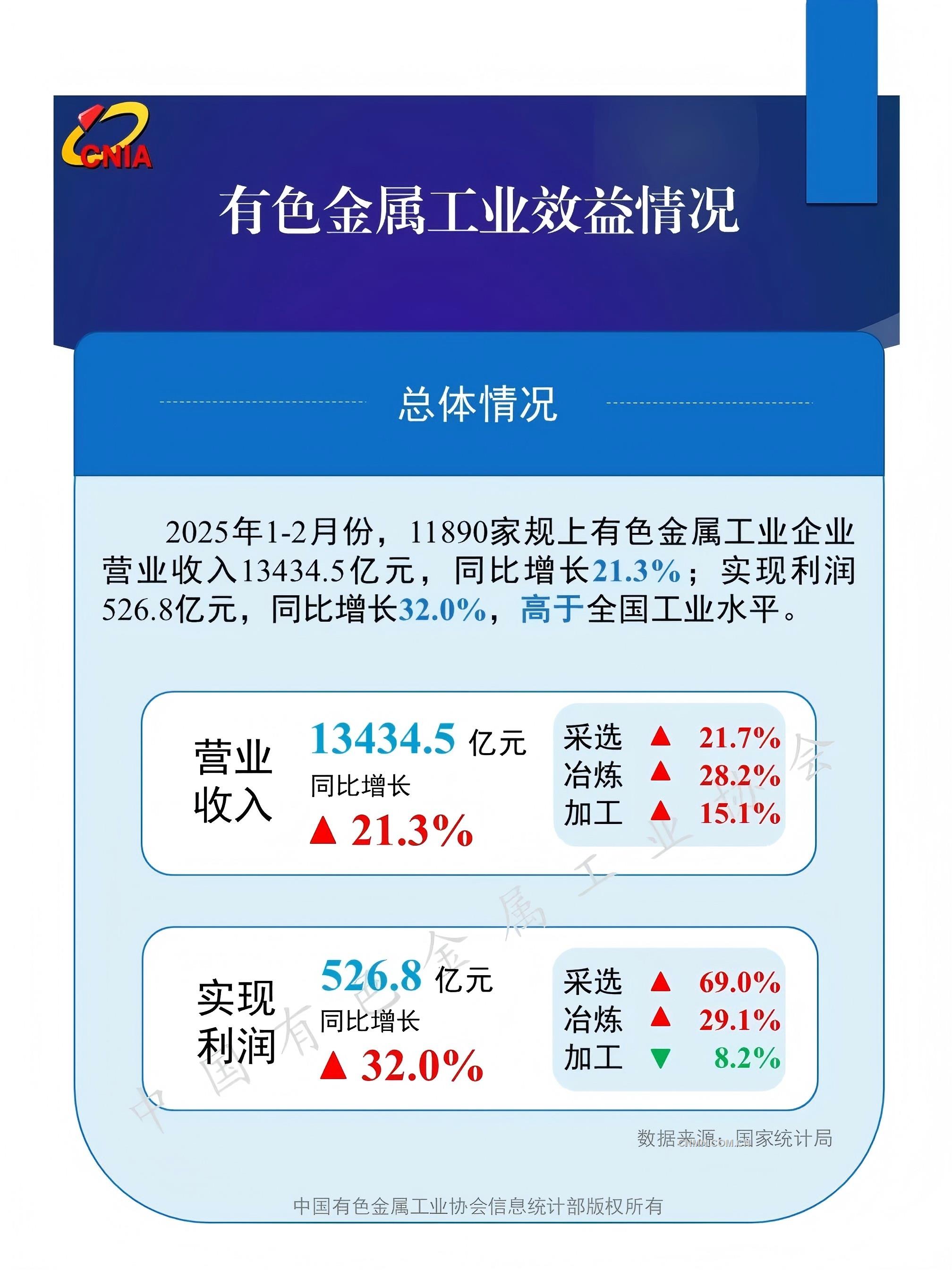 2025年1—2月份规模以上有色金属工业企业利润同比增长32.0%